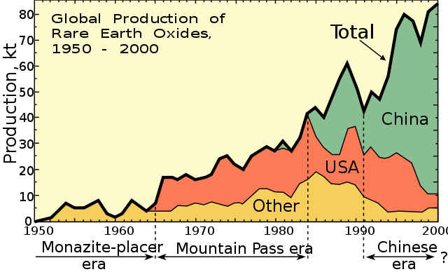 A neodymium magnet is Nd2Fe14B. Other rare-earths are often added to improve high-temperature performance, these being terbium, dysprosium, and praseodymium. Call these four rare earths the "Neodymium tribe". They have higher demand than other rare earths.